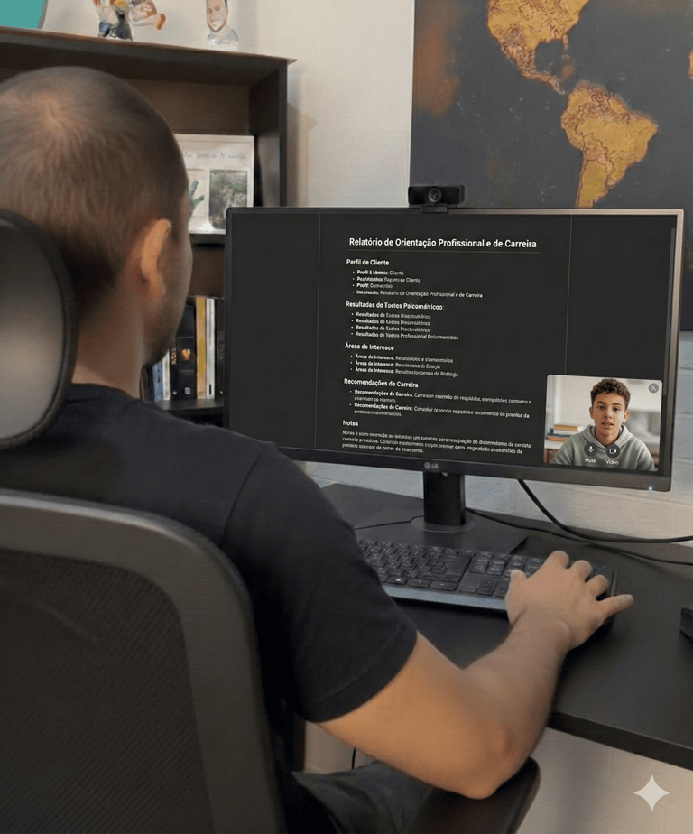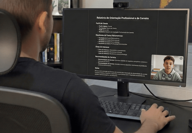 Aplicação de testes técnicos e instrumentos validados para cruzar suas habilidades cognitivas com traços de personalidade.